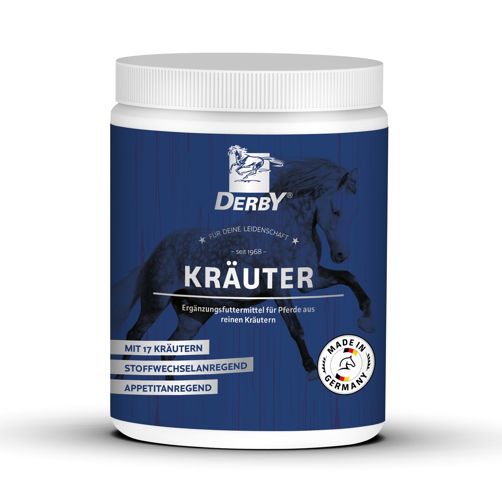 DERBY® Kräuter ist ein Ergänzungsfuttermittel für Pferde. Es besteht aus 17 verschiedenen Kräutern. Die Kräuter sind sorgfältig ausgewählt und von höchster Qualität. Durch eine schonende Trocknung können der angenehme Geruch und die Inhaltstoffe erhalten werden. DERBY® Kräuter können entweder trocken über das Krippenfutter gegeben, in Mash oder Heucobs eingerührt oder als Tee aufgekocht werden.