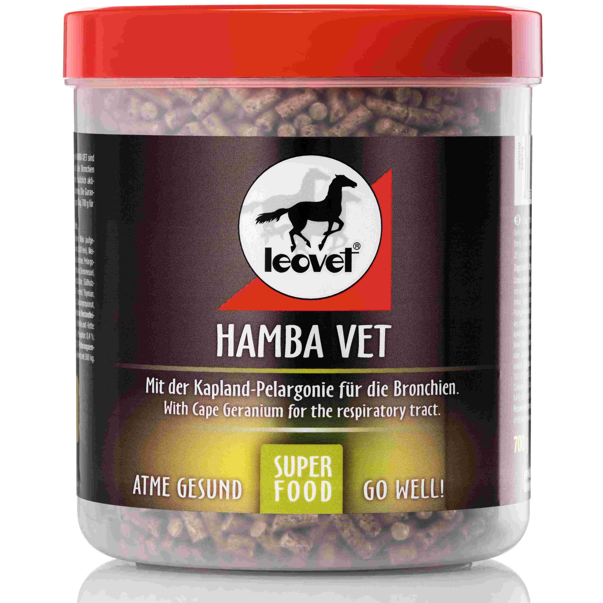 Gesundes Knabbern zur Steigerung der Abwehrkräfte. Hamba-Vet enthält die Kapland-Pelargonie, eine lila blühende Geranienart, aus der bekannte Heilmittel gegen Infektionen der Atemwege hergestellt werden. Zusätzlich angereichert mit Kräutern wie Zinnkraut, Brennnessel, Huflattich und Süßholz, aktiviert Hamba-Vet die Abwehrkräfte und schützt vor Husten.