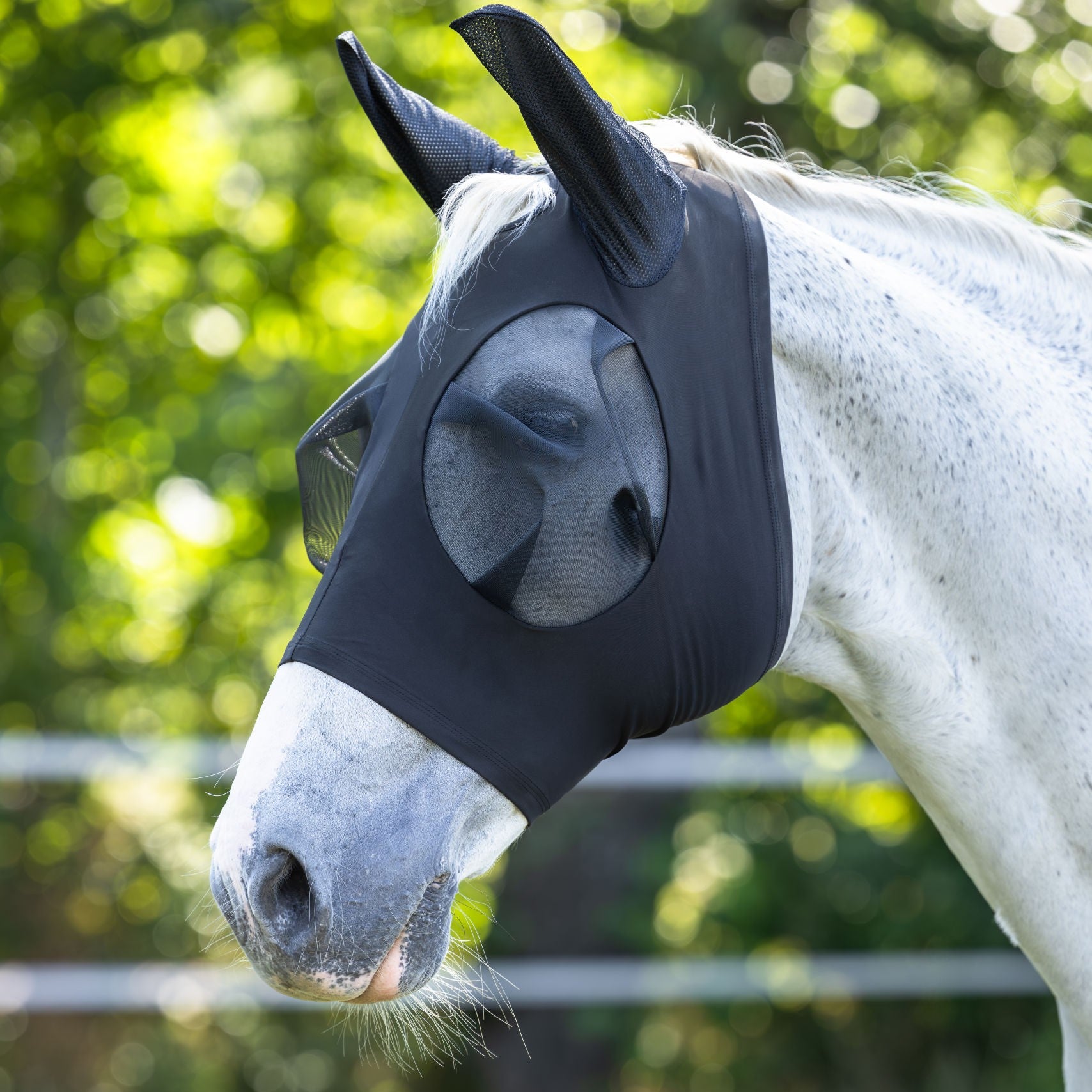 - eng anliegende Fliegenschutzmaske mit großzügig geformter Augenpartie