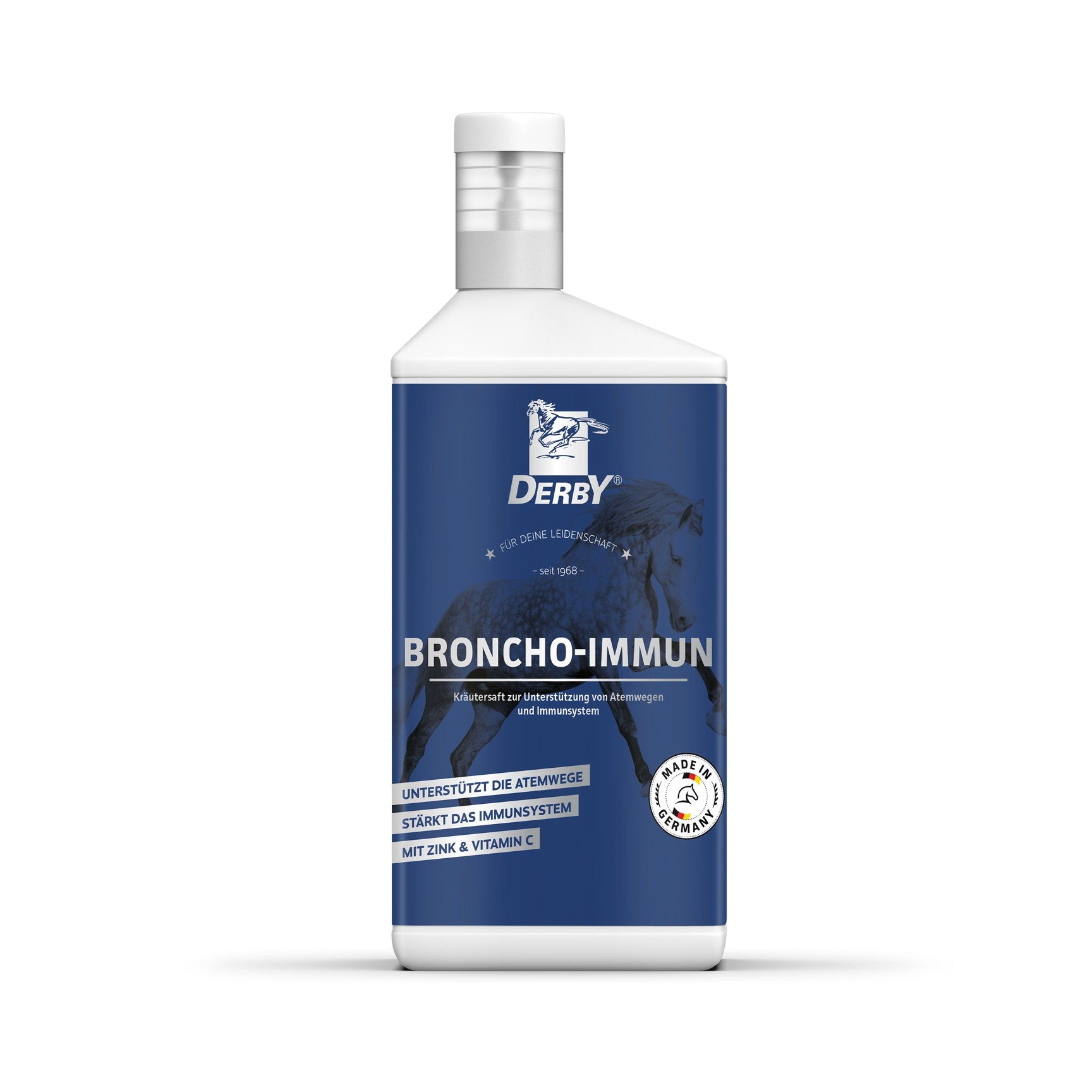 DERBY Broncho-Immun ist ein Ergänzungsfuttermittel für Pferde. Bei Umwelteinflüssen wie kalten Temperaturen oder einer starken Staubbelastung kann eine Unterstützung des Immunsystems hilfreich sein. Dazu sind Komponenten wie Zink, Vitamin C und Echinacea enthalten. Die flüssige Rezeptur sichert dabei eine gute Aufnahme. Komponenten wie Thymian, Efeu, Fenchel, Rosmarin und Eukalyptus sind ebenfalls in DERBY Broncho-Immun enthalten.
