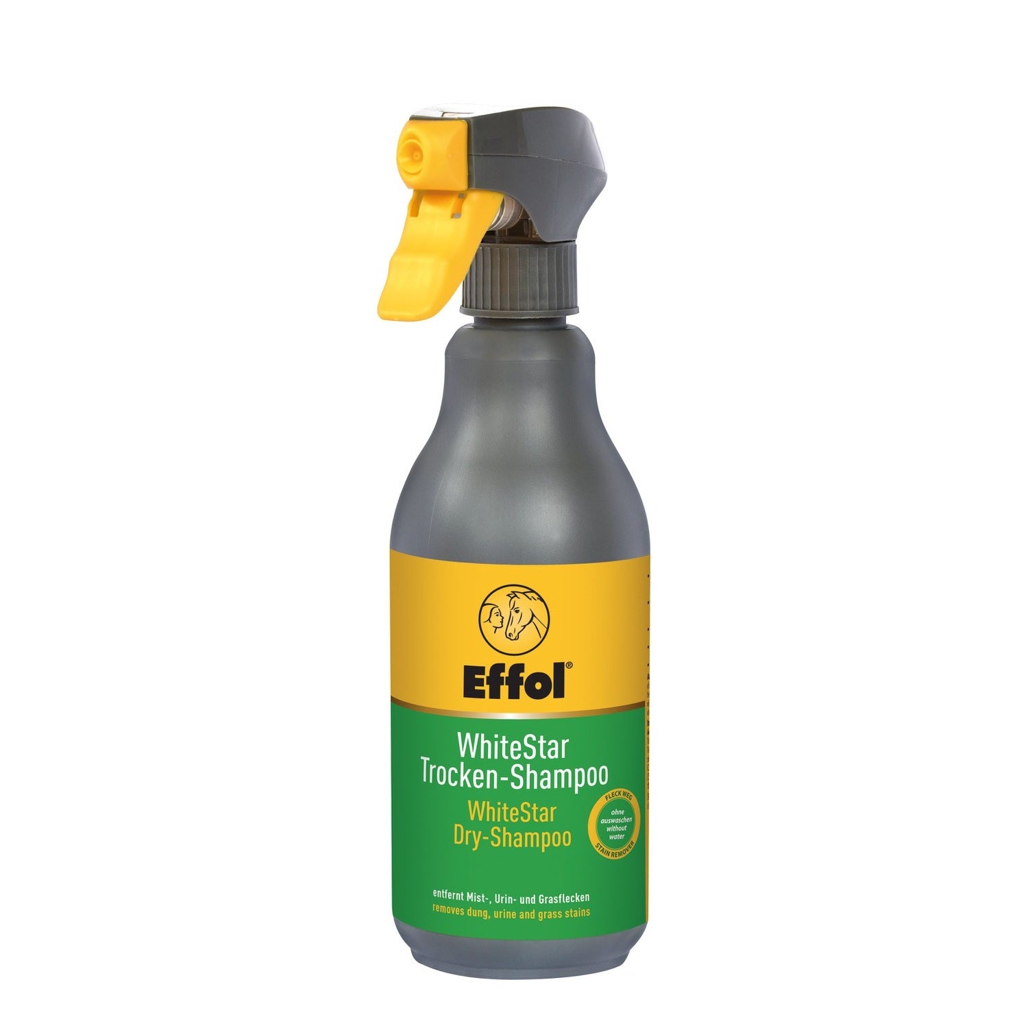 Der Fleckenentferner bei Mist, Urin- und Grasflecken. Das Effol WhiteStar Trocken-Shampoo ist ideal zum Reinigen von hellen Fellfarben und zum Hervorheben von Abzeichen. Wenn es zum Waschen zu kalt ist oder es mal schnell gehen muss hilft das Effol WhiteStar Trocken-Shampoo ohne das es ausgewaschen werden muss. Es erhält die natürliche haptik des Fells ohne rutschig zu werden. Dabei ist Effol WhiteStar Trocken-Shampoo pH-neutral, ohne Bleichmittel und ohne Peroxide und sehr ergiebig.