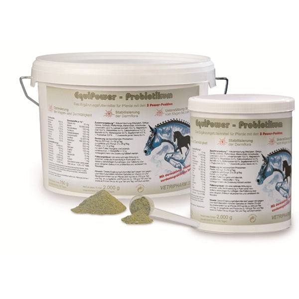 EquiPower-Probiotikum ist ein Ergänzungsfutter mit einem breiten Spektrum an verdauungsaktiven Stoffen, welche von der Futteraufnahme bis zum Kotabsatz bei ernährungsbedingten Gesundheitsstörungen im Verdauungssystem den Erhalt und die Wiederherstellung einer physiologischen Magen-Darmtätigkeit fördern.