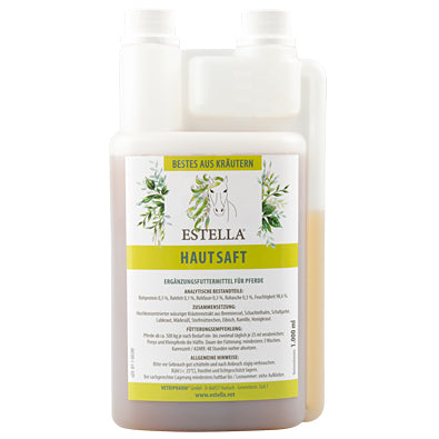ESTELLA Kräutersäfte - Bestes aus Kräutern: Die natürlichen Inhaltsstoffe aus Brennnessel, Schachtelhalm, Schafgarbe, Labkraut, Mädesüß etc. fördern die Hautgesundheit des Pferdes.