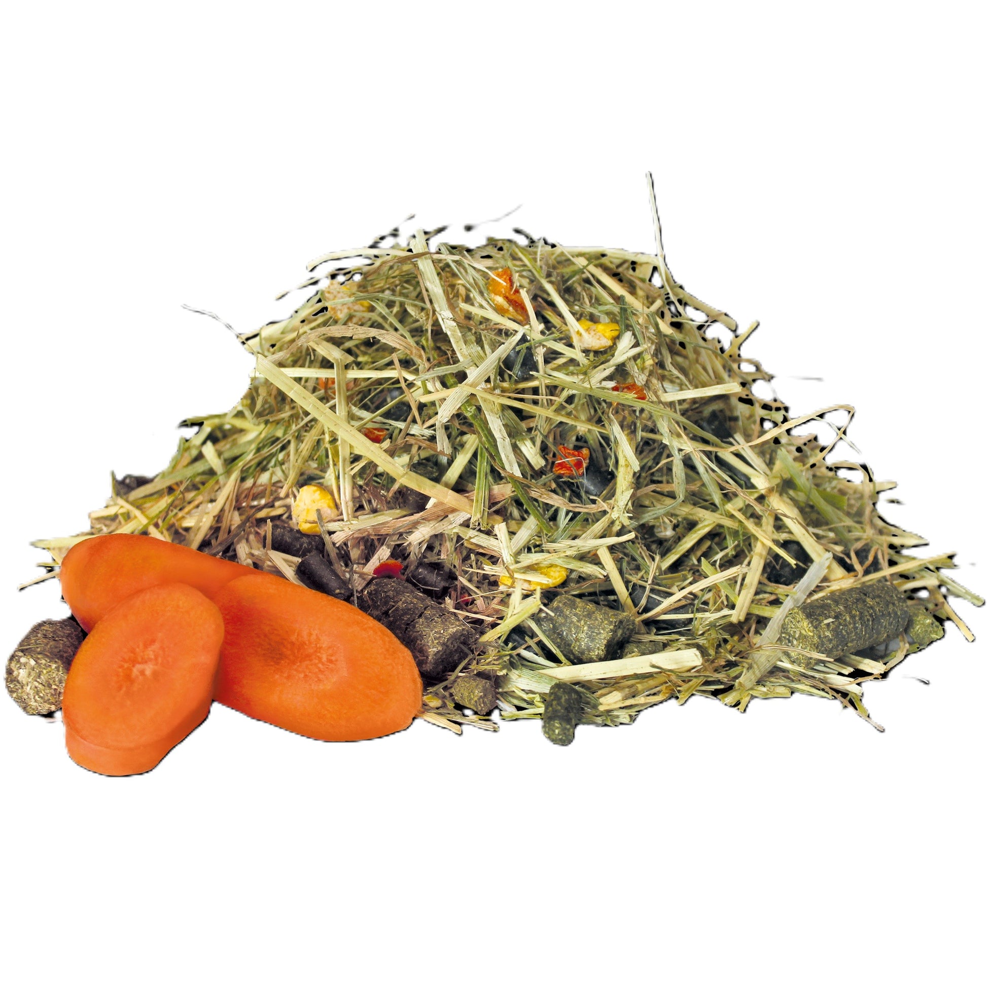 Raufuttermischung basiert auf künstlich getrocknetem Gras und enthält neben dem