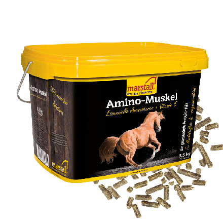 marstall Amino-Muskel versorgt in konzentrierter Form Sport- und Freizeitpferde mit essenziellen Aminosäuren (ohne Soja) und Vitamin E als Antioxidans. Es fördert einen raschen Muskelaufbau und eine verkürzte Regenerationsphase. Dank der getreidefreien Rezeptur ist es für alle Pferde geeignet.