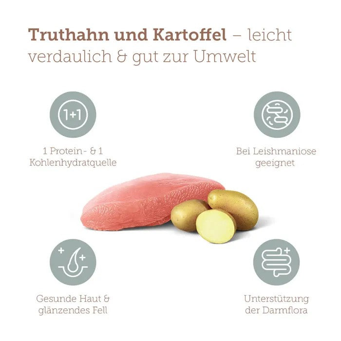 pure sensitive Truthahn & Kartoffel – die Lösung für ein unbeschwertes Hundeleben! Speziell für Hunde mit normaler Aktivität entwickelt und nach dem LID-Prinzip konzipiert, setzt es auf Qualität und Verträglichkeit. Wenn dein vierbeiniger Freund empfindlich reagiert, kann pure sensitive eine passende Wahl sein. Mit nur wenigen, aber hochwertigen Zutaten sorgt pure sensitive für eine erstklassige Verträglichkeit.
