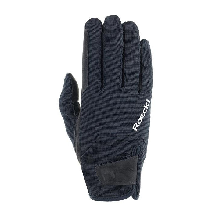 Komfortabel, elastisch, funktionell und vielseitig: Der Somerreithandschuh MEURA aus dem Hause Roeckl Sports versteht sich als Allrounder für den Alltag rund ums und auf dem Pferd. Extrem stretchiges 2-Wege-Spandex an der Oberhand sorgt für ein Höchstmaß an Flexibilität und Bewegungsfreiheit für die Hände und Finger beim Reiten und bei der Stallarbeit – und damit für herausragenden Tragekomfort und einen erstklassigen Sitz. Für sicheren und zuverlässigen Halt am Zügel und in Folge eine ebenso präzise wie weiche Verbindung mit dem sensiblen Pferdemaul ist das durchwegs griffige ECO.SENSE® an der kompletten Innenhand verantwortlich. Dieses softe, taktile, bequeme und dennoch überaus strapazierfähige Synthetiksuede sieht so aus und fühlt sich so an wie Wildleder, besteht jedoch aus 60 Prozent recyceltem Polyester, 32 Prozent herkömmlichem Polyester und acht Prozent Elasthan. Und mit dem breiten Oberhand-Klettriegel kann die Passform am Handgelenk feinjustiert werden. Die spezielle Nahtführung COMFORT-CUT am Zeigefinger perfektioniert den ohnehin schon sehr hohen Tragekomfort des MEURA, sodass kein weiterer Besatz notwendig ist. Der Handschuh eignet sich besonders für Gummizügel und ist in dezentem Schwarz, stylishem Chocolate und klassischem Dress Blue mit schwarzer Innenhand erhältlich. Er wurde zusätzlich jeweils mit dem Roeckl Logo in frischem Weiß akzentuiert. Praktisch und clever: Das Modell kann bei 30 Grad in der Maschine gewaschen werden und ist somit schnell wieder einsatzbereit. Enthält kein Leder.